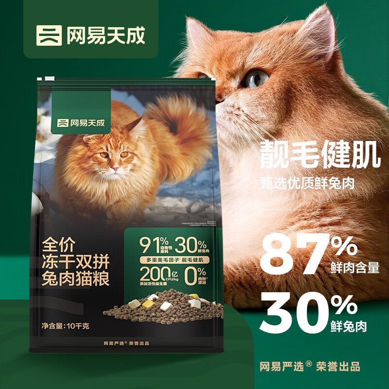 网易天成全价冻干双拼兔肉猫粮 幼猫成猫主粮 全阶段无谷粮 冻干双拼兔肉猫粮10kg