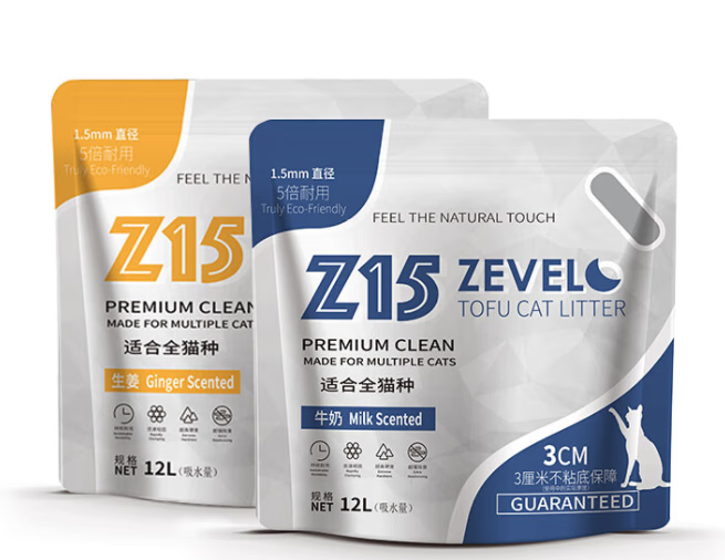 贝意品12L四袋ZEVELO赞乐豆腐猫砂除臭无尘豆腐砂结团吸水大颗粒不沾 自立袋生姜整箱12L四袋