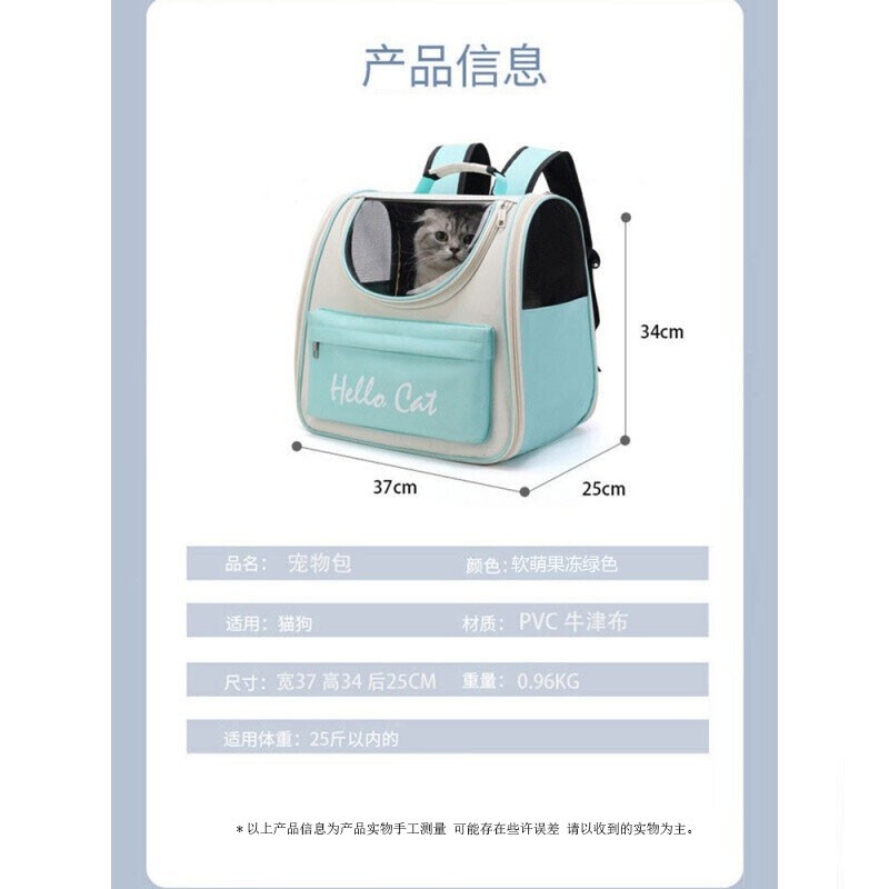 【自营时效】 猫包外出大号宠物包猫背包太空舱双肩包航空太空包猫猫猫咪狗出行透气 珑小宠 双肩包果冻绿色【建议15斤以内宠物】