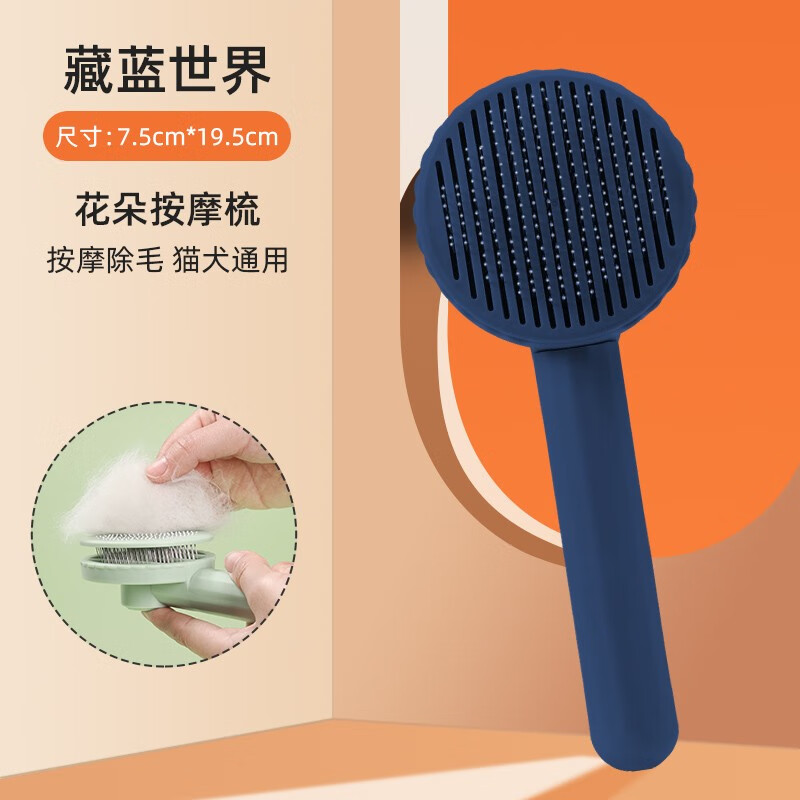 D-cat 宠物梳子猫狗梳子去浮毛针梳毛刷猫长毛猫咪专用狗毛清理器撸猫神器宠物用品 藏蓝世界(犬猫通用 一键除毛)