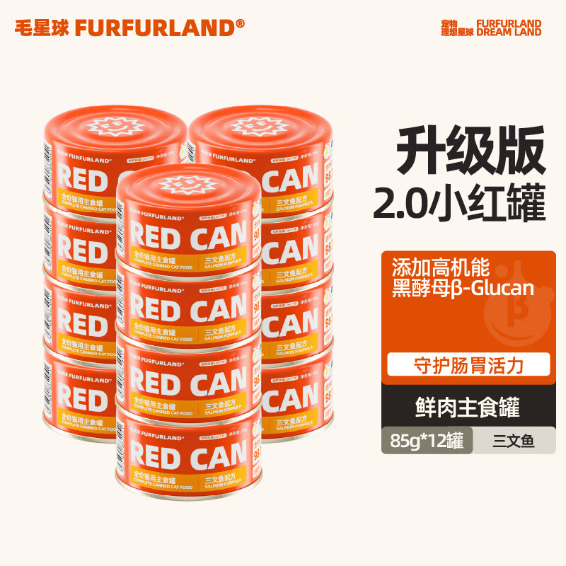 FurFurLand毛星球猫罐头黑酵母三文鱼味成幼猫通用宠物猫零食湿粮浓汁85g*12
