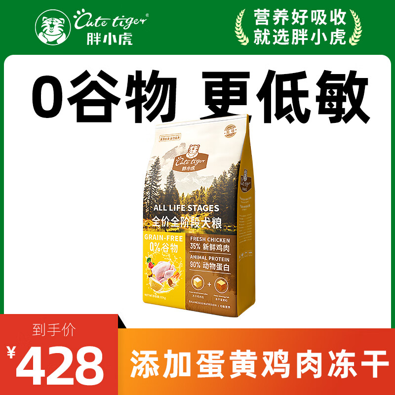 胖小虎狗粮拉布拉多金毛泰迪柯基比熊博美全阶段幼成犬粮无谷鲜鸡肉 10kg 送货上门