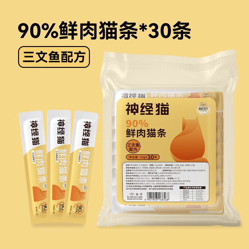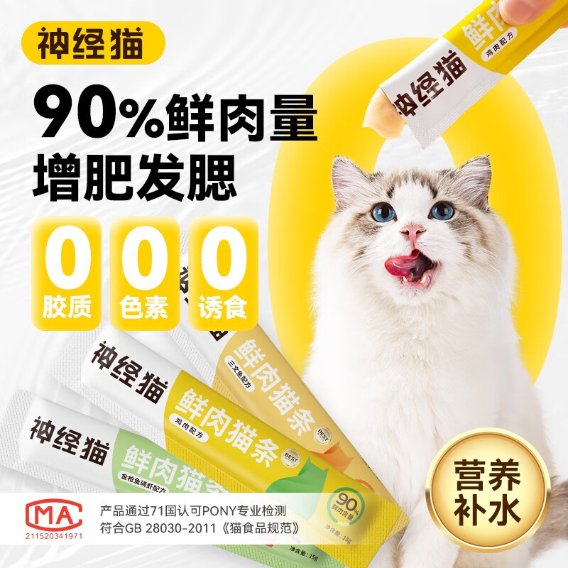 神经猫(shenjingmao)猫咪主食猫条无添加剂互动补水罐头营养增肥发腮猫幼猫宠物猫零食 【90%含肉量】三文鱼味-30只