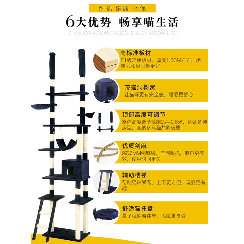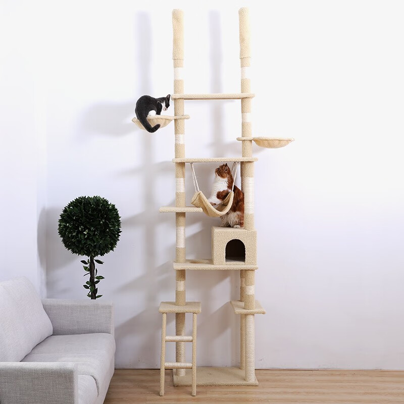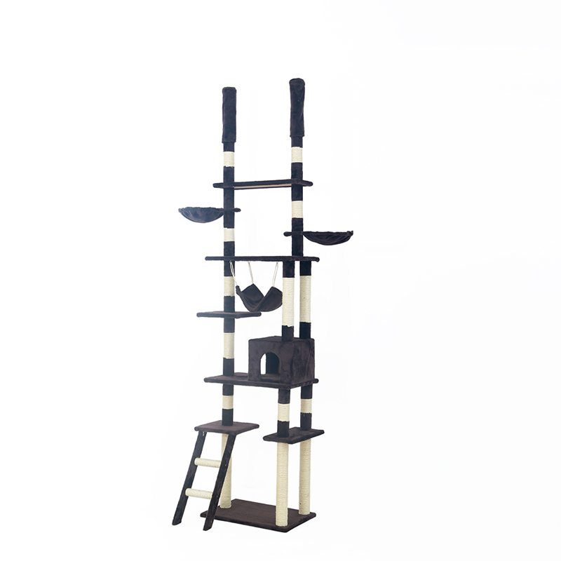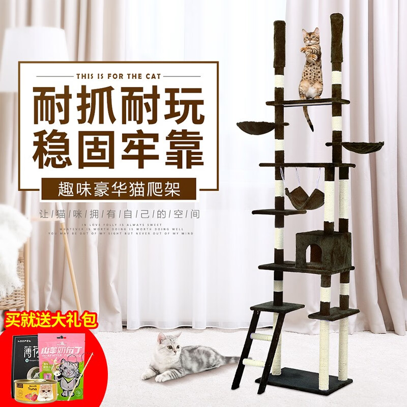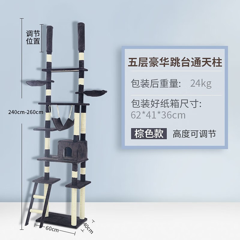 hoopet豪华猫窝猫爬架猫架猫树带吊床超大五层跳台猫抓柱猫抓板猫窝猫咪玩具 带吊床超大五层跳台猫爬架(棕)
