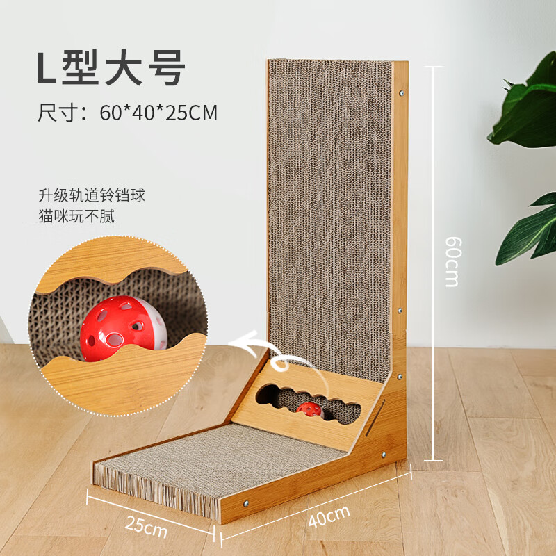跃越(yueyue)猫抓板L型立式耐磨不掉屑立体耐抓大号瓦楞纸猫爪板猫咪玩具用品 升级大号L型带铃铛球 猫薄荷