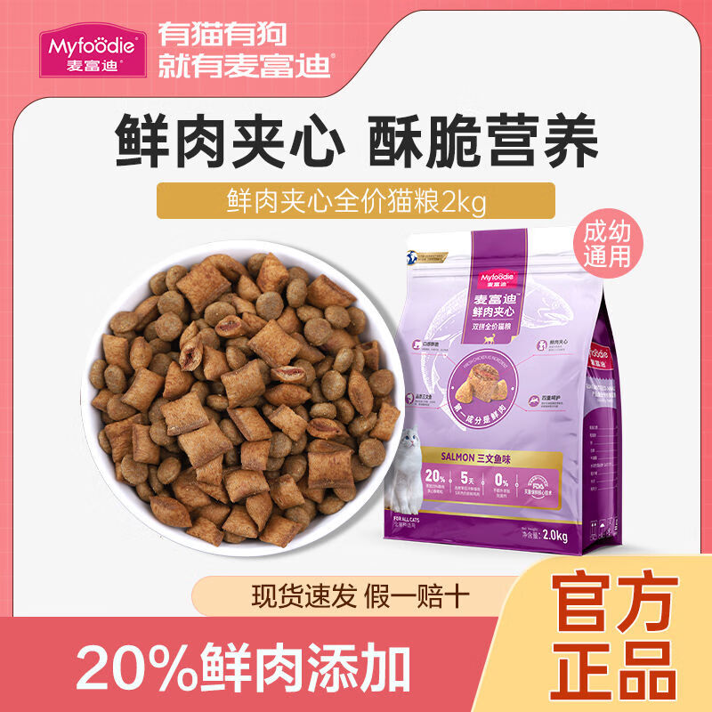 麦富迪猫粮鲜肉夹心三文鱼火鸡双拼英短美短蓝猫成幼猫通用粮2kg [升级全期]三文鱼鲜肉夹心猫