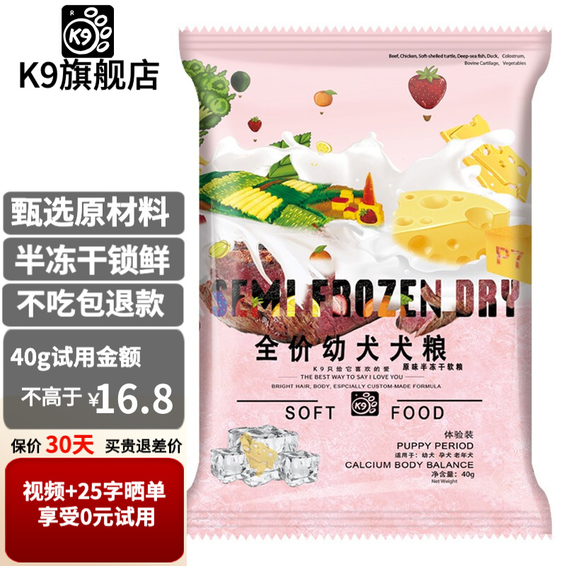 K9狗粮原味半冻干软粮幼犬孕犬老年无谷犬粮 奶糕粮肉松离乳期优质蛋白犬主粮 中小型犬粮 旅行装(40g)