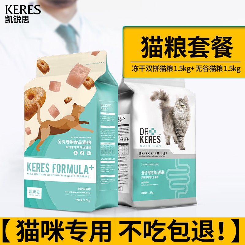 凯锐思冻干双拼猫粮幼猫成猫专用成年鱼肉深海鱼增肥发腮全价 冻干双拼 无谷高肉猫粮