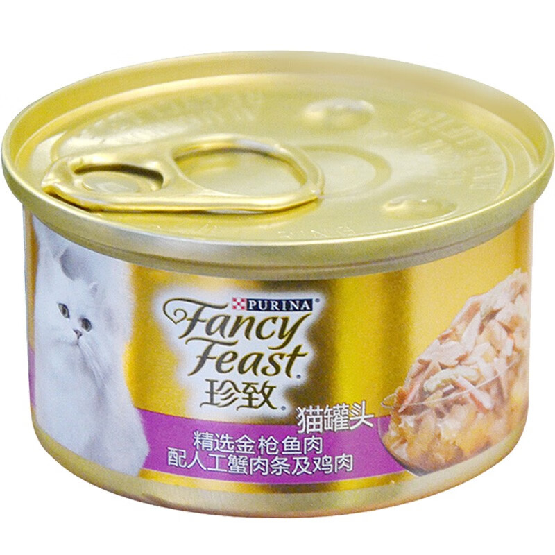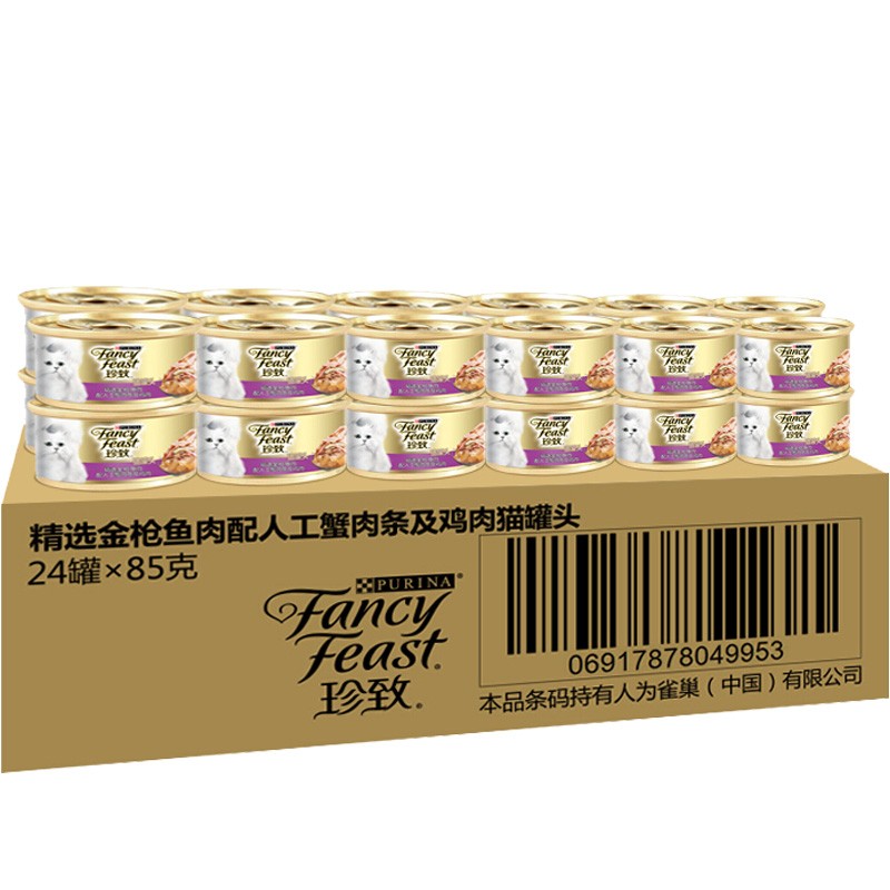 珍致猫罐头24白金罐进口白肉湿猫粮宠物猫零食罐头 金枪鱼肉配人工蟹肉条及鸡肉24罐【肉冻型】