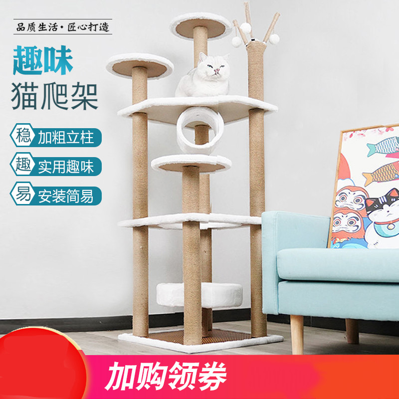 猫窝四季通用四季藤席猫抓板猫爬架大型猫抓柱密度猫树猫窝一体出口猫跳台 B11