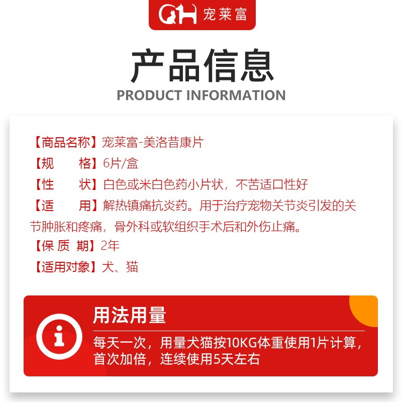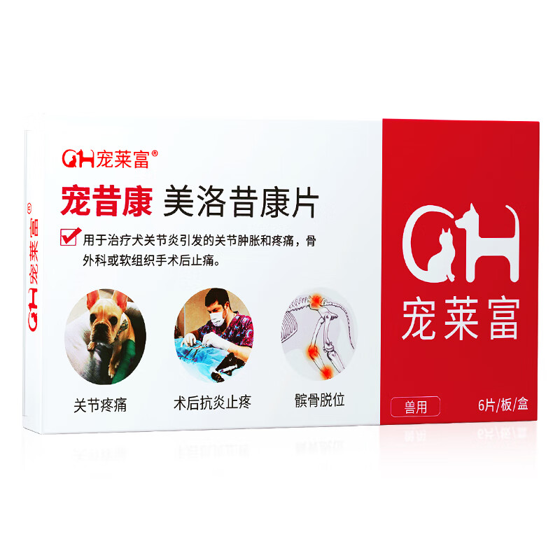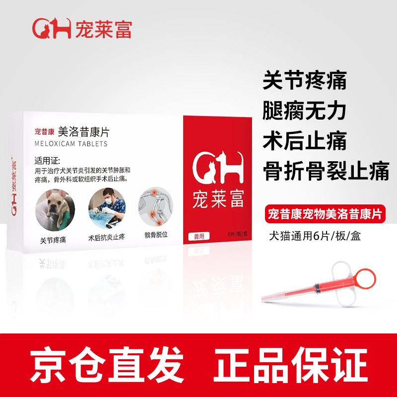 宠莱富宠昔康美洛昔康片 宠物消炎止痛狗狗关节炎症手术创伤骨折猫咪绝育外伤疼痛抗炎折耳猫发病止疼药 1g/6片/盒 喂药器