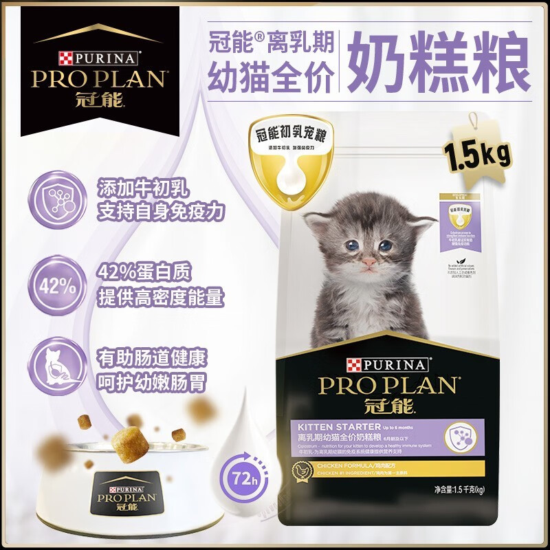 冠能猫粮 0-6月龄奶糕粮 离乳期幼猫专属配方 特别添加牛初乳小奶猫粮 幼猫奶糕1.5kg