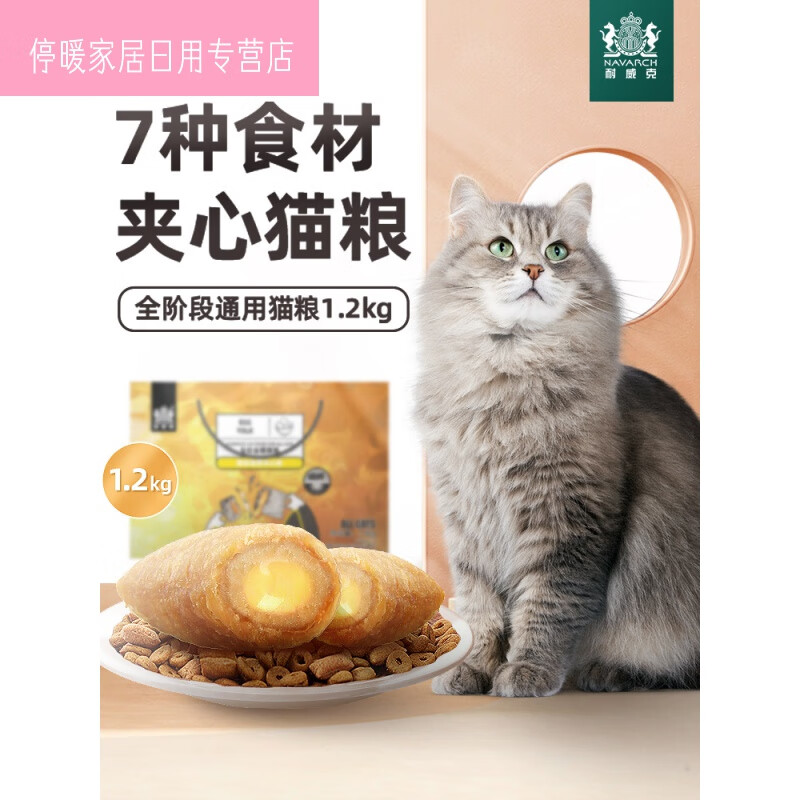 耐威克(Navarch)夹心喵酥猫粮4.斤 成猫1-4月英短蓝猫幼猫全期通用 增肥发 蛋黄夹心2.4.斤(呵护肠胃)