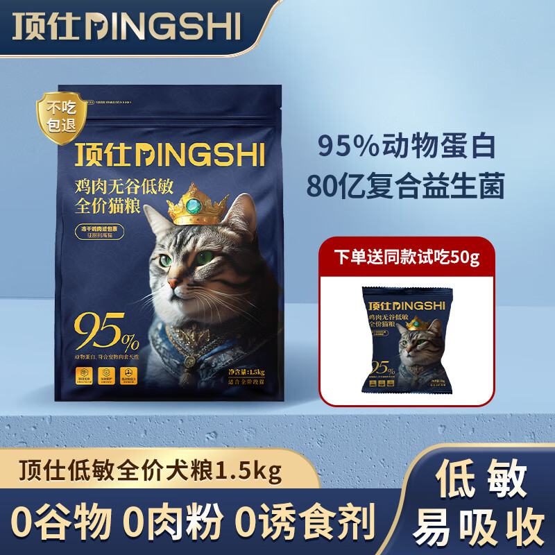 顶仕全价猫粮幼猫成猫全阶段通用猫粮试吃 高鲜肉益生菌营养增肥发腮 全价低敏猫粮1.5kg品鉴装