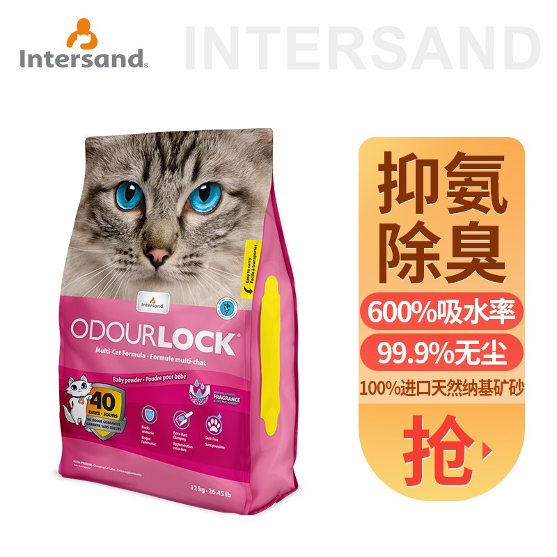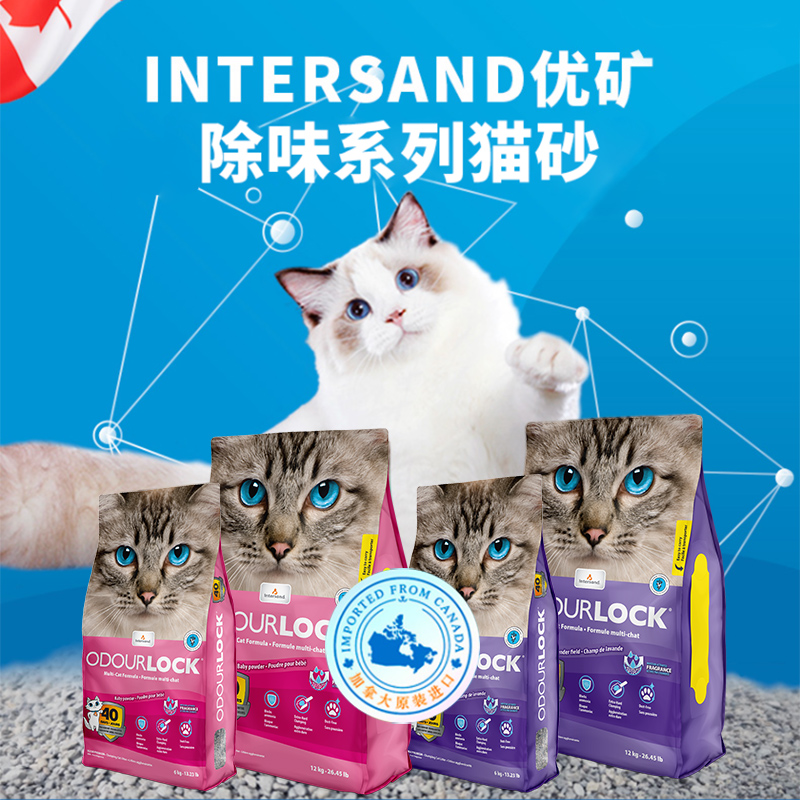 加拿大进口Intersand膨润土矿砂快速结团爽身粉香猫砂12kg