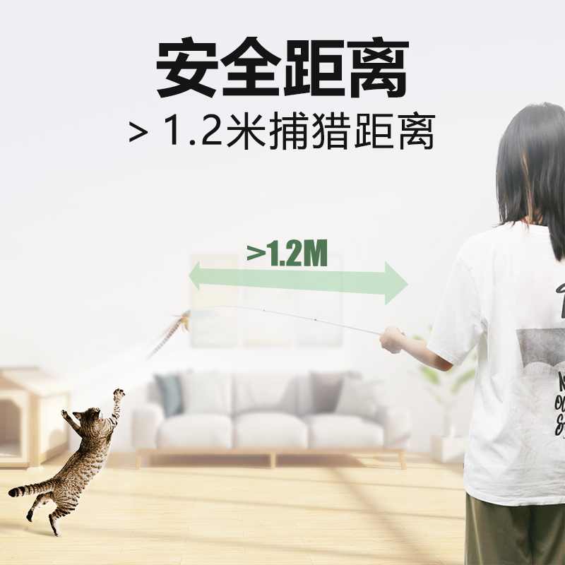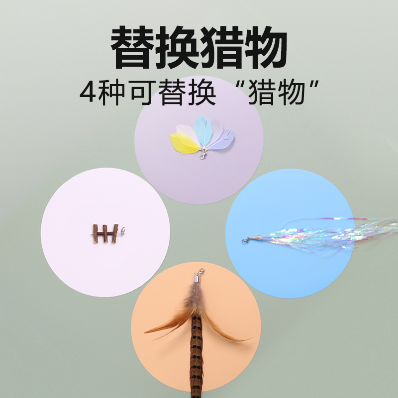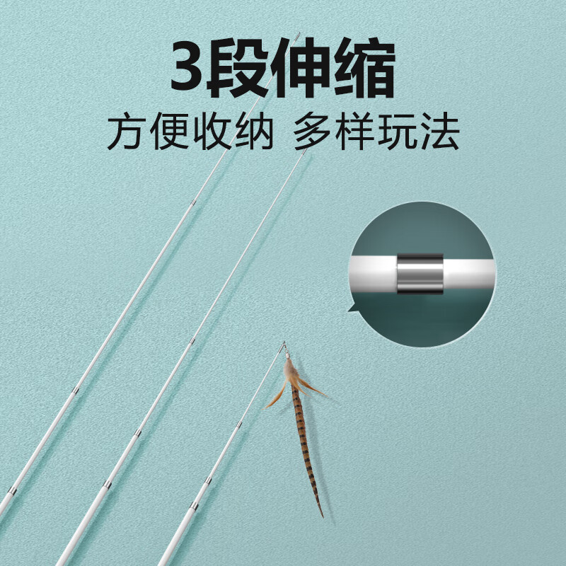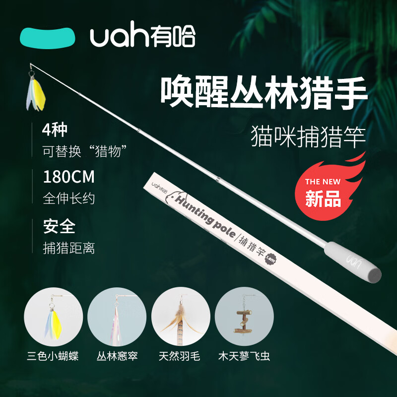有哈(uah)猫玩具逗猫棒自嗨神器解闷猫咪用品180cm三段伸缩4种替换捕猎竿(白色)