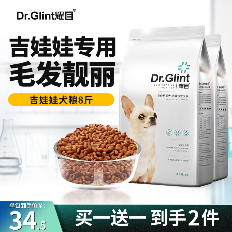 耀目 吉娃娃狗粮专用幼犬小型犬专用粮白色专用美毛亮毛 8斤 | 到手2袋