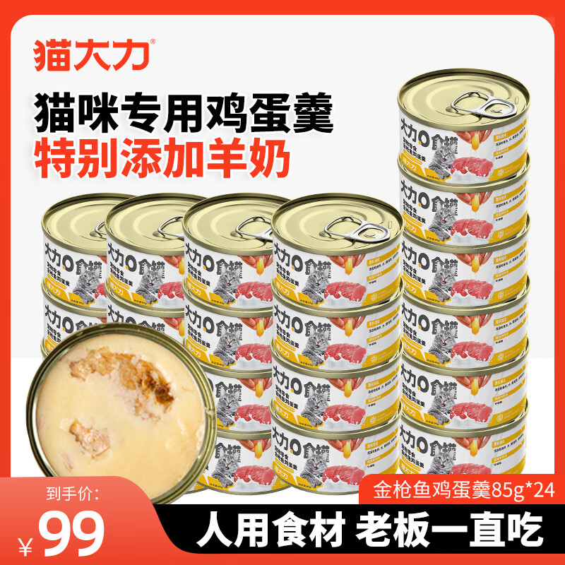 猫大力猫罐头宠物零食猫用浓汤大口肉猫湿粮成幼猫全价通用罐头营养增肥 【金枪鱼鸡蛋羹85g】*24罐