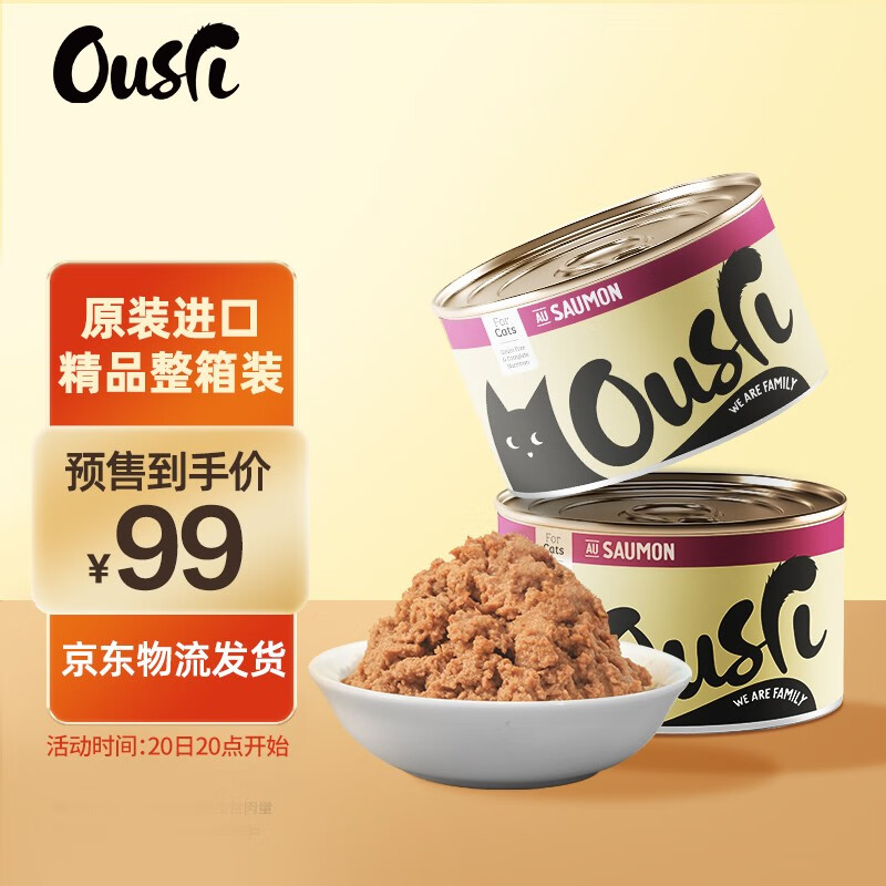 Ousri 泰国原装进口猫罐头 无谷猫罐头 猫湿粮猫零食 【整箱装】鸡肉三文鱼口味 170g*24罐