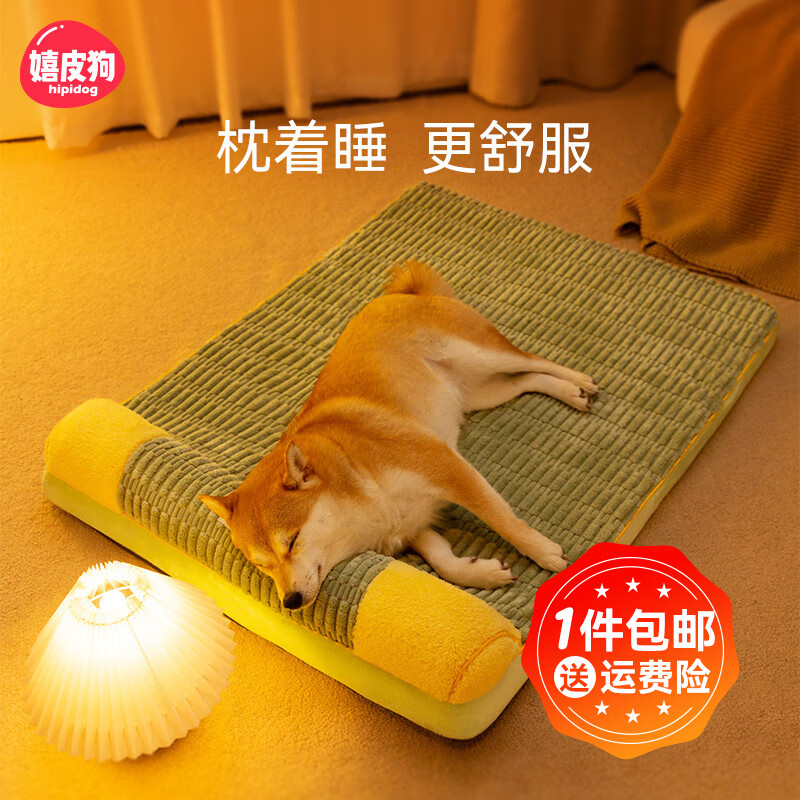 嬉皮狗狗窝冬季猫窝狗狗靠枕沙发大狗狗窝中大型犬撞色垫子猫咪睡垫宠物 撞色绿 XL-80*60cm(建议体重35斤内)