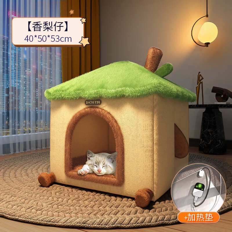 蔻丝猫窝秋冬天保暖加热电热发热毯智能恒温加热网红猫窝狗窝四季通用冬季封闭式保暖睡觉 【恒温电加热-防塌香梨屋】40_50_53cm