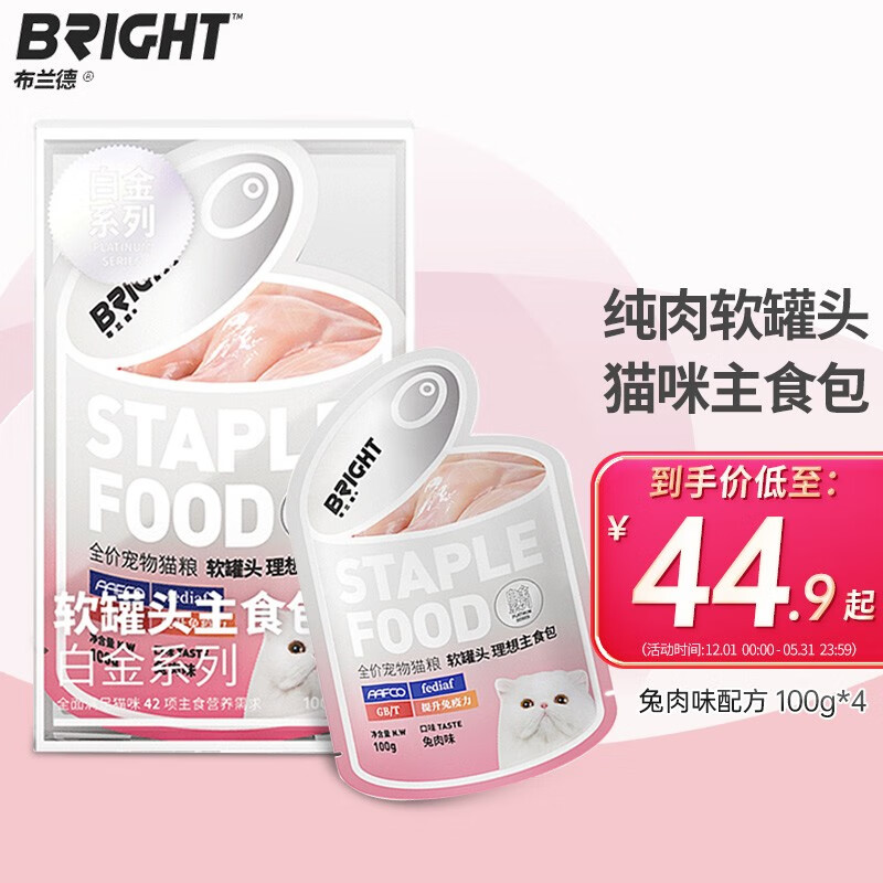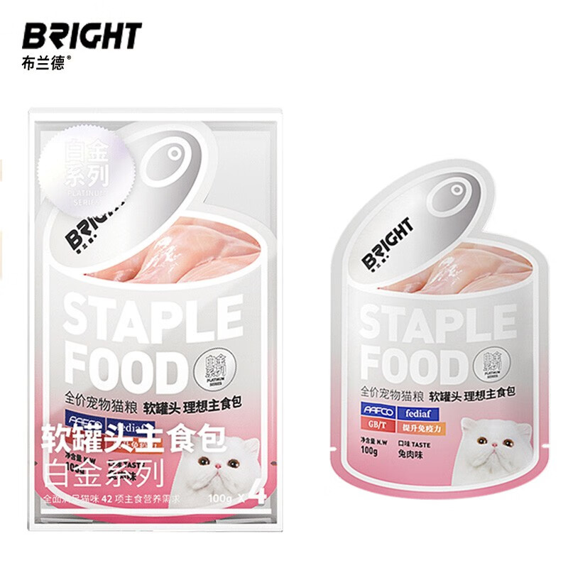 布兰德猫湿粮猫主食罐头猫咪生骨肉白金主食包幼猫成猫全阶段全肉猫粮 兔肉味(100g*4)
