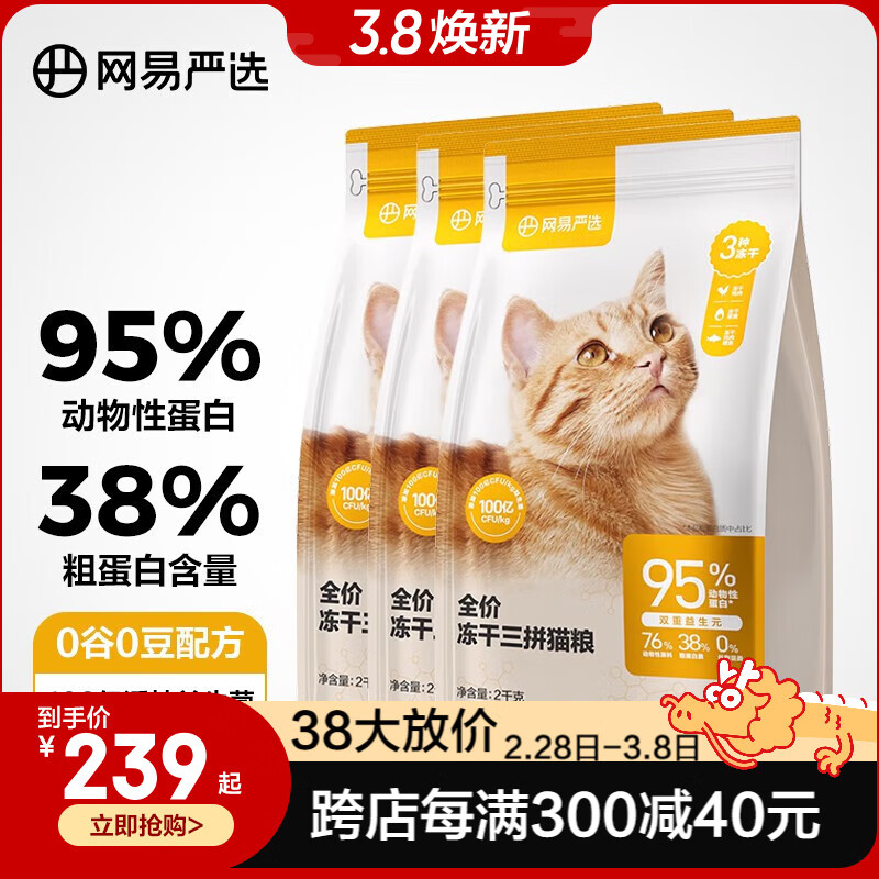 网易严选全价冻干三拼猫粮成幼通用增肥美毛明眸改善挑食 无谷粮 【升级款】2kg*3袋