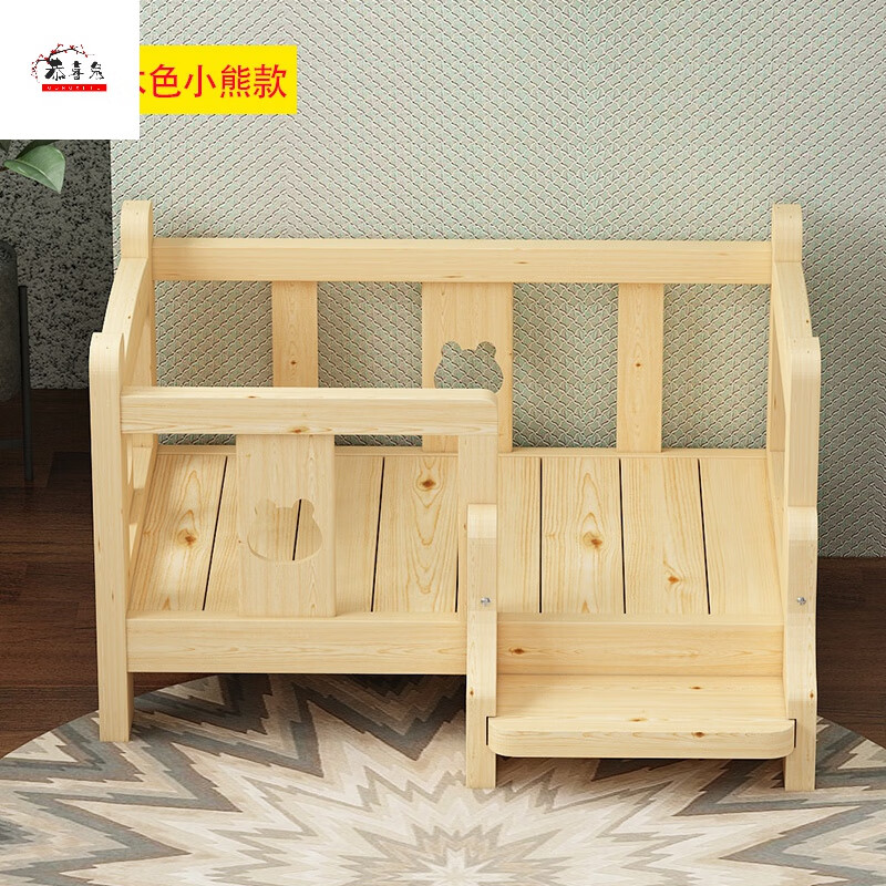 出极 宠物床狗狗木床宠物实木床狗窝粉色狗床泰迪金毛实木宠物定 原木小熊款 M-中型80*60cm建议25斤内