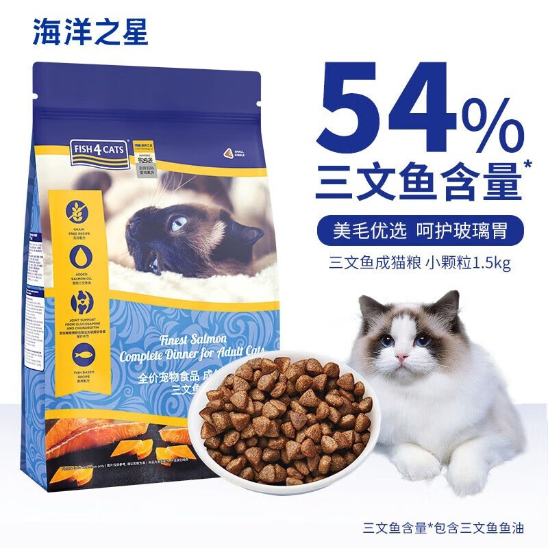 海洋之星三文鱼猫粮成幼猫无谷低敏主粮 英短布偶赛级成猫幼猫粮小颗粒 【美毛护胃】三文鱼成猫粮1.5kg