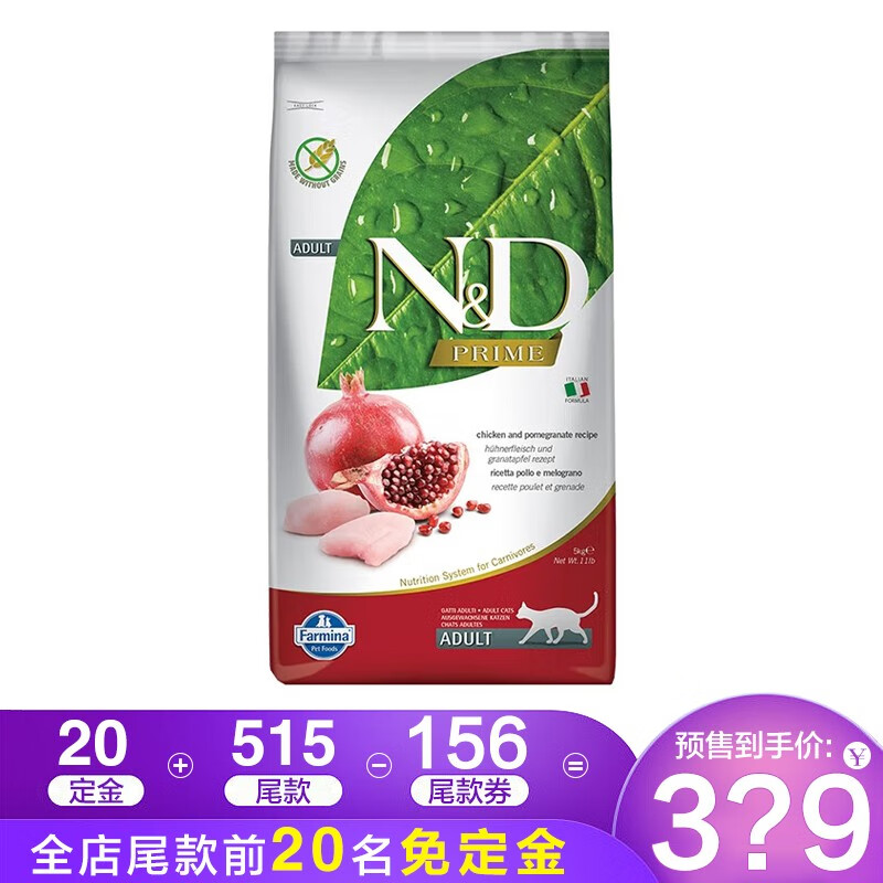 【预售】Farmina法米娜猫粮 原装进口无谷高蛋白增肥发腮成猫粮 鸡肉石榴成猫粮 5kg