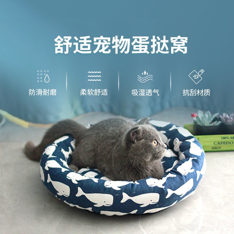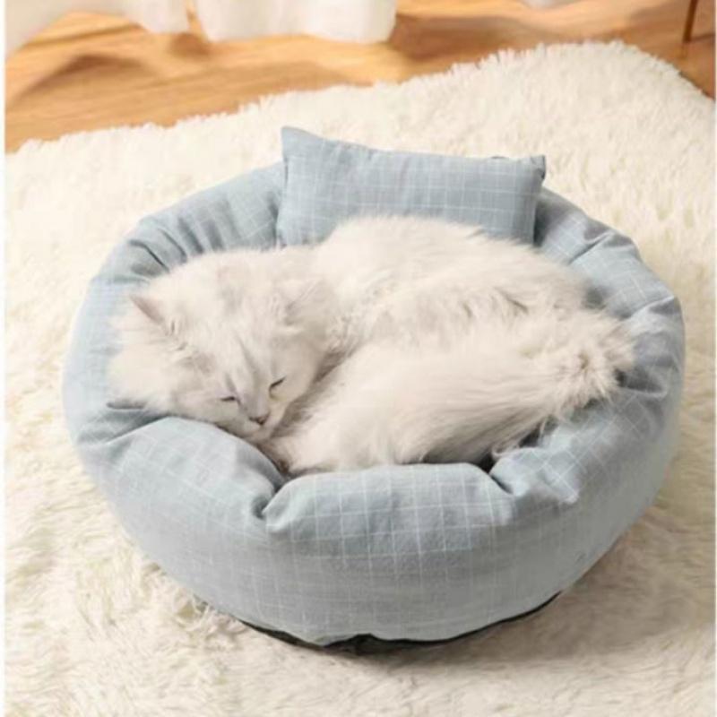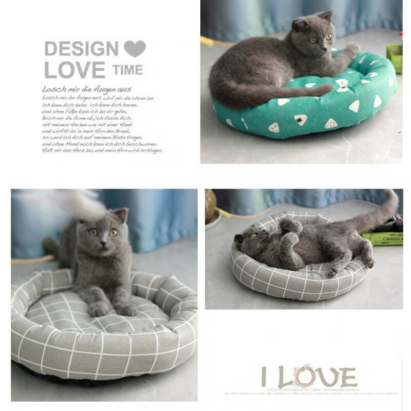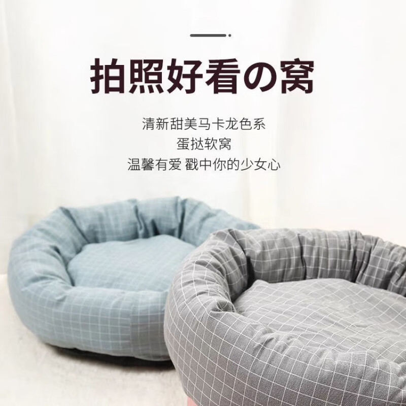 皆百福 蛋挞猫窝猫床加棉舒软四季通用可拆洗透气猫咪睡垫狗狗宠物小窝 灰格子 直径35CM【适合4斤内】