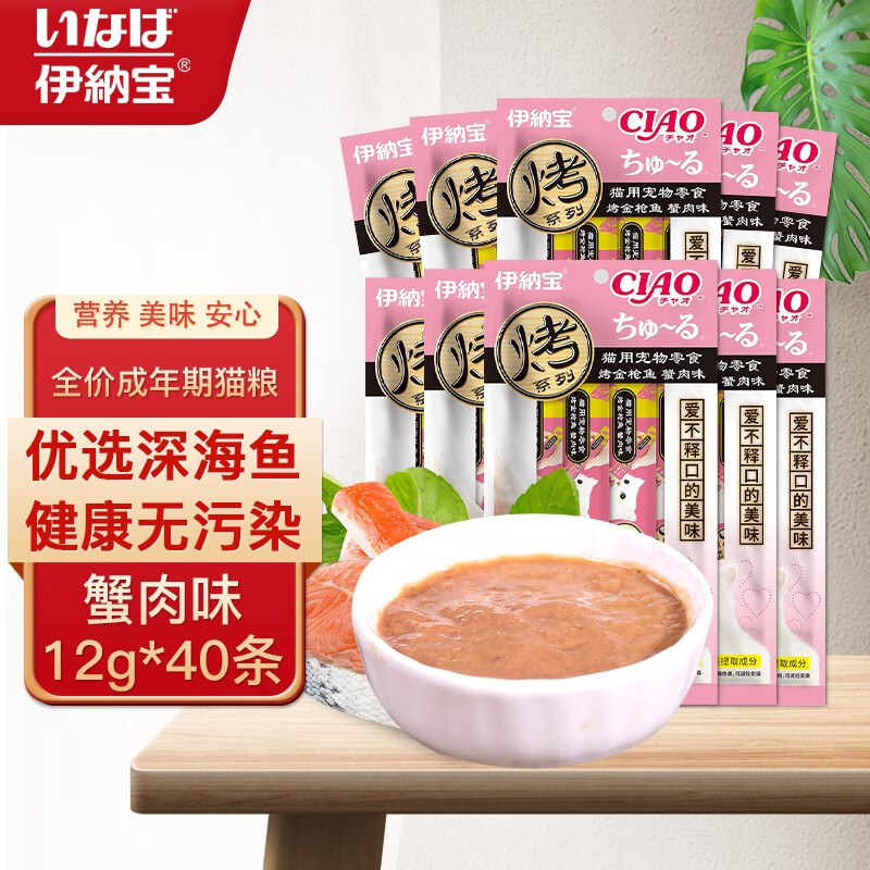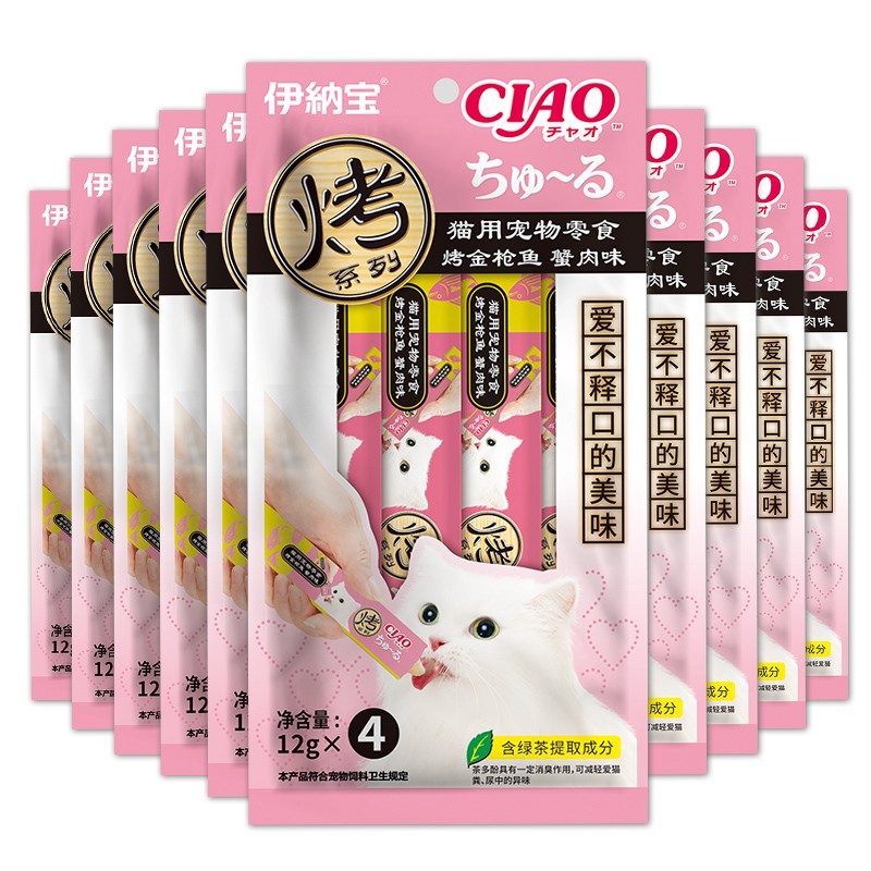 伊纳宝猫用宠物零食 烤系列猫条猫果冻 海洋鱼流质肉泥湿粮猫零食 蟹肉味12g*4条*10包