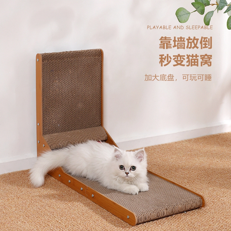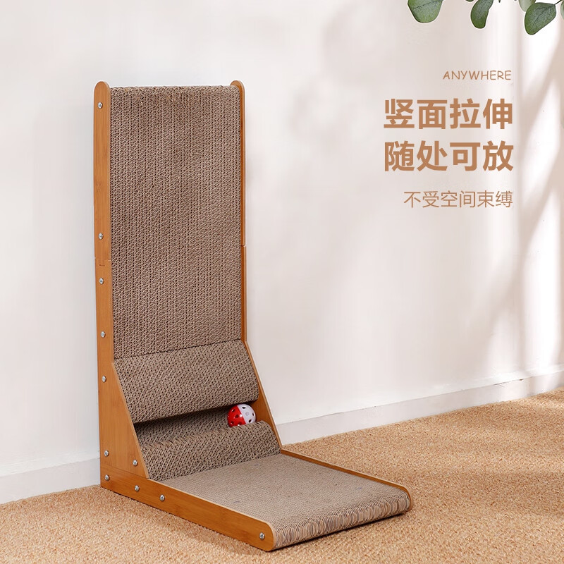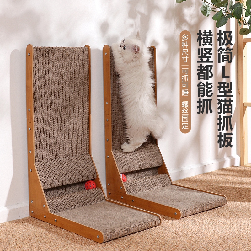 跃越(yueyue)L型猫抓板立式耐磨不掉屑大号猫咪磨抓板瓦楞纸特大号防猫爪用品 大号升级L型立式猫抓板带铃铛 猫薄荷(