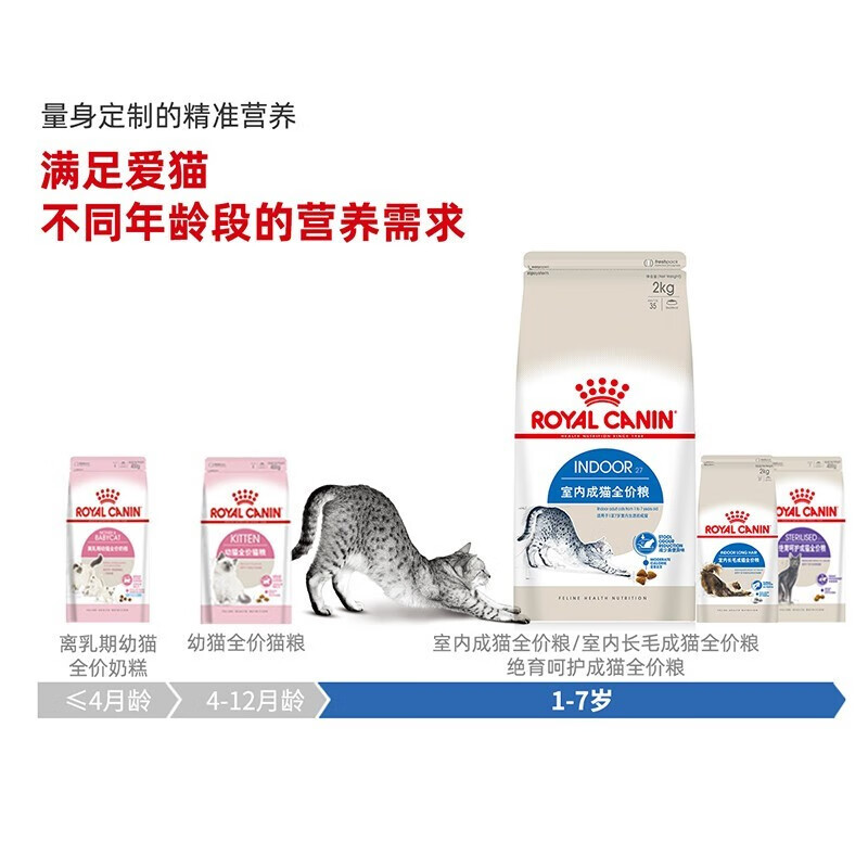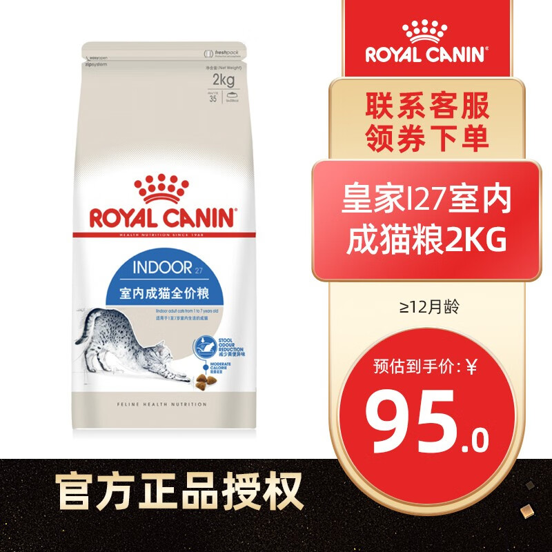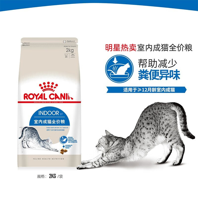 皇家猫粮 i27 Indoor27室内成猫猫粮 全价粮2kg装4斤12月去毛球减少异味通用粮
