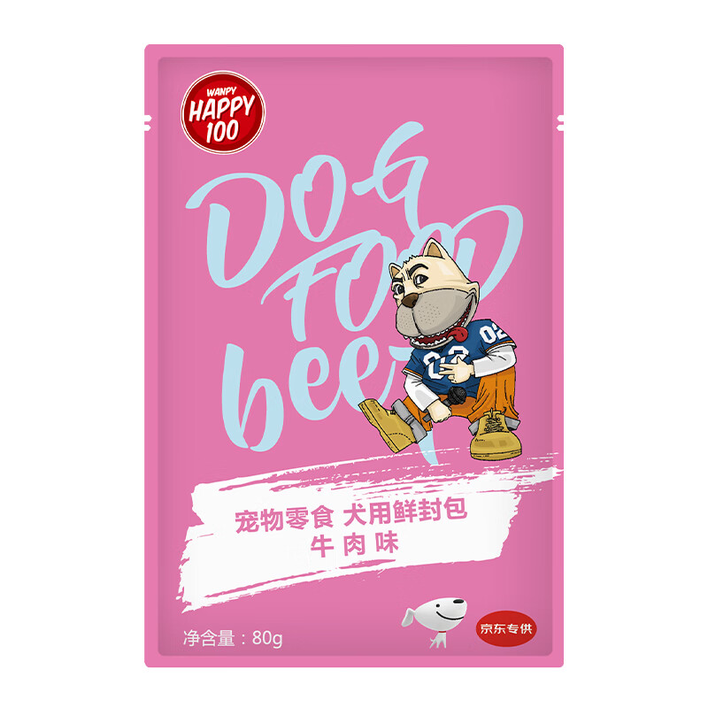 顽皮(Happy100)宠物零食 犬用鲜封包 牛肉味80g(JD)
