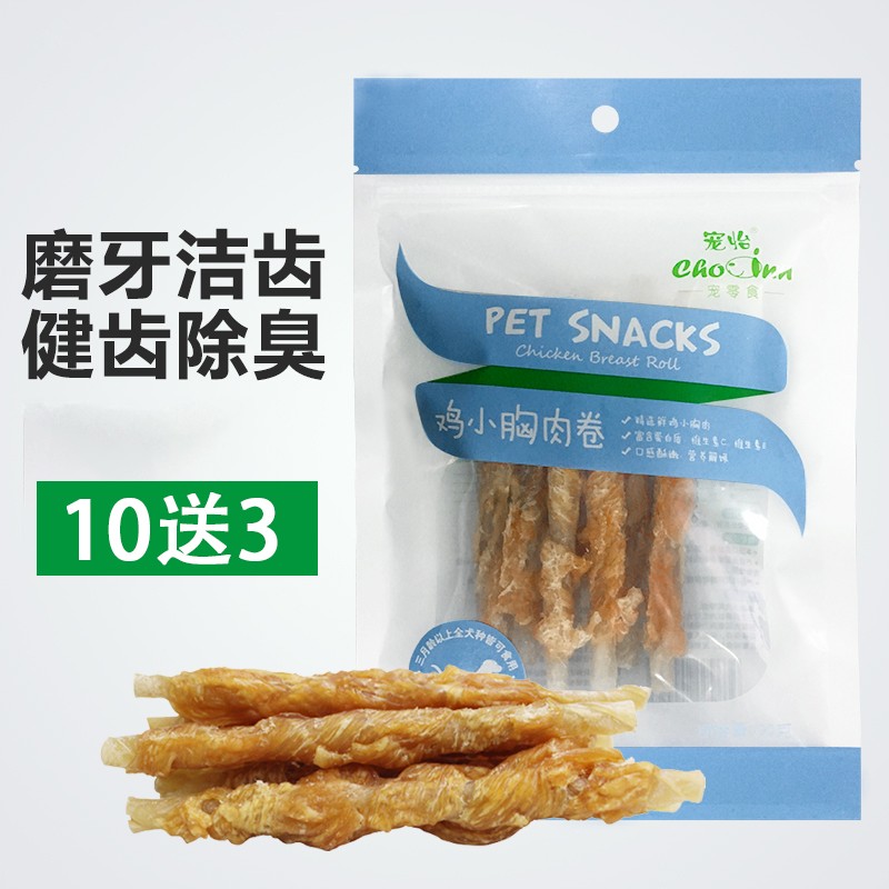 宠怡狗狗零食公鱼缠肉小鱼干鸡肉条三明治泰迪金毛磨牙棒洁齿幼犬软丝训犬奖励 鸡小胸肉卷90g