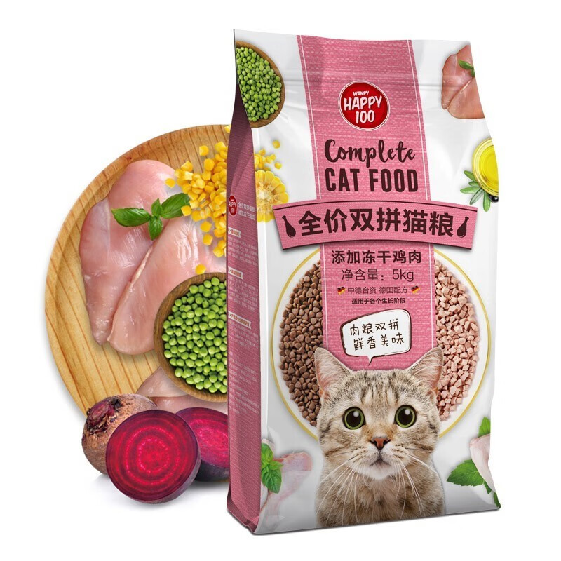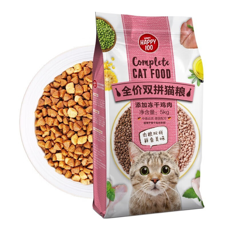 顽皮Happy100醇鲜猫粮 成猫通用型全价美英短蓝猫天然粮 全价双拼冻干猫粮1.5kg