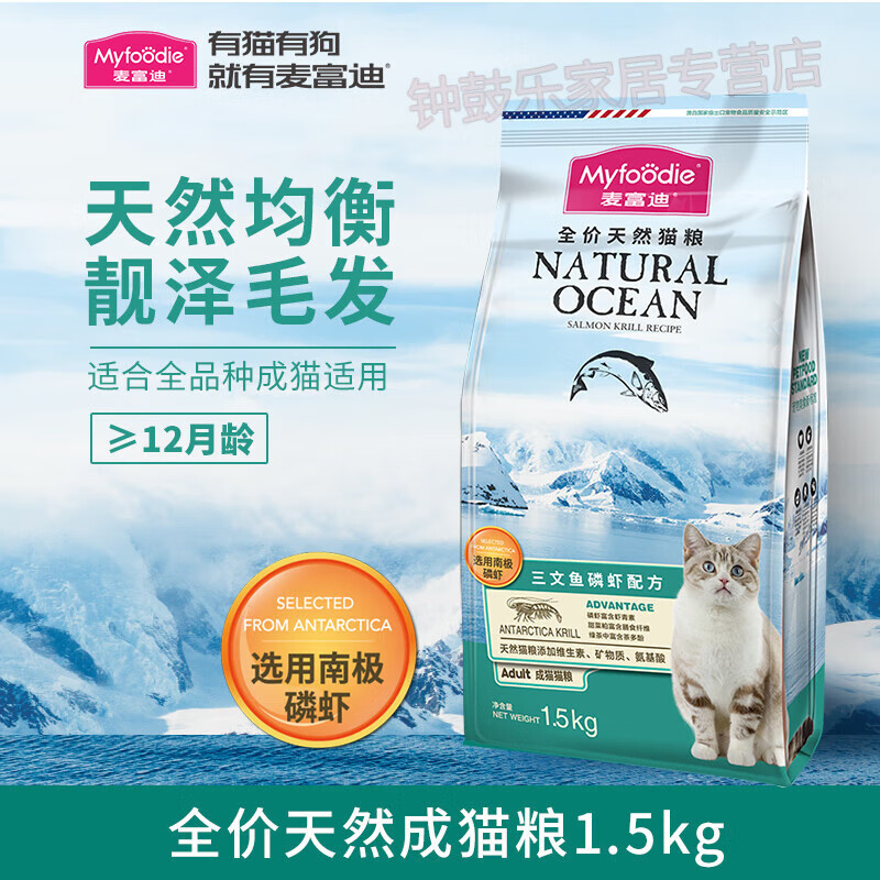 麦富迪(Myfoodie)麦富迪猫粮鱼油三文鱼美短英短蓝猫成猫幼猫高营养天然粮1.5kg3斤 三文鱼磷虾成猫粮1.5kg【2包54 1g以食品口味为准