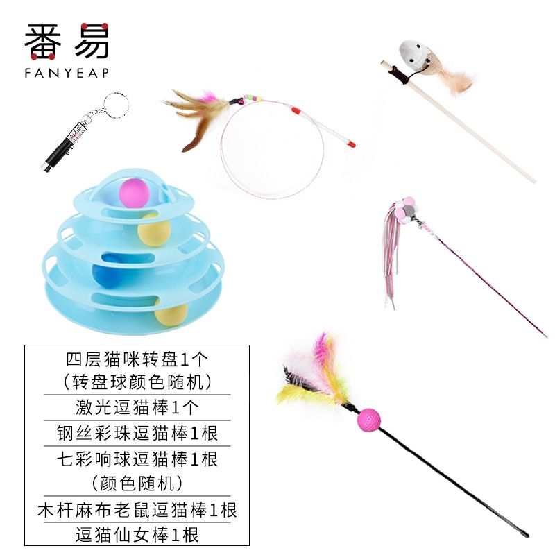 番易 猫玩具逗猫棒自嗨转盘铃铛球老鼠不倒翁激光笔逗宠物猫神器 四层猫转盘 逗猫5件套