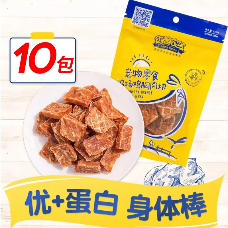 约翰农场小黄箱狗零食吃货箱鸡肉干成幼犬泰迪宠物训练奖励宠物零食10包 鸡胸肉块100g*10包