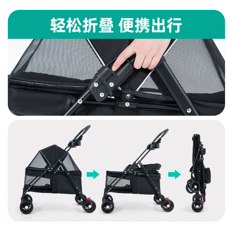 小冻宠物推车狗狗代步猫咪泰迪手推车外出神器轻便可折叠中小型狗拉车 黑色 猫犬通用