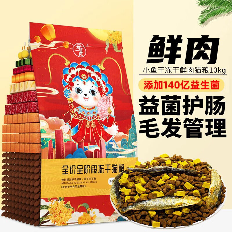 宠非凡深海鱼冻干猫粮10kg20斤成猫幼猫英短橘猫全阶段全猫咪通用 小鱼干 蛋黄冻干猫粮10公斤