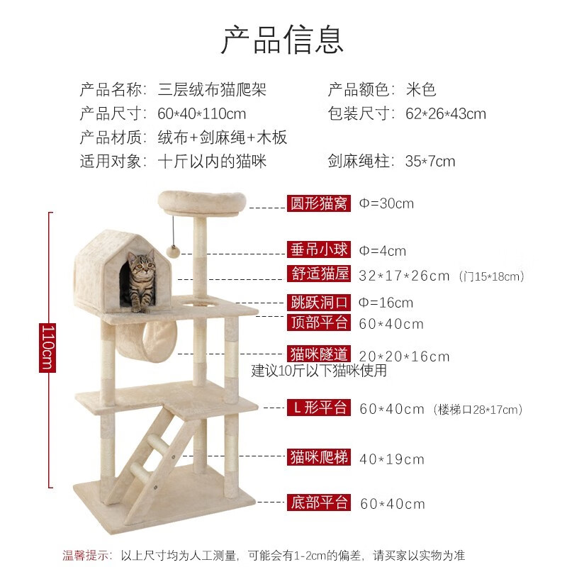 猫爬架【1.56米豪华款】 大型豪华猫架子猫窝猫树猫跳台猫抓柱多功能实用猫抓架耐抓猫咪玩具 进阶款
