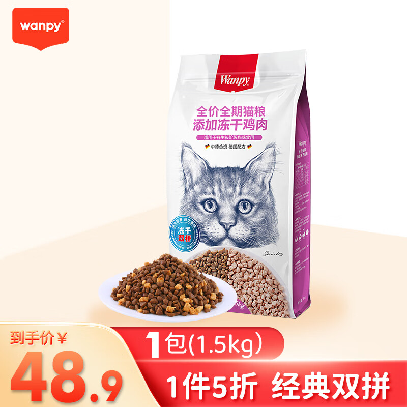 顽皮wanpy猫粮鸡肉味全价猫粮居家宠物主粮幼猫成猫布偶英短美短猫粮专用营养发腮低温烘焙粮猫咪食品 双拼冻干鸡肉猫粮1.5kg