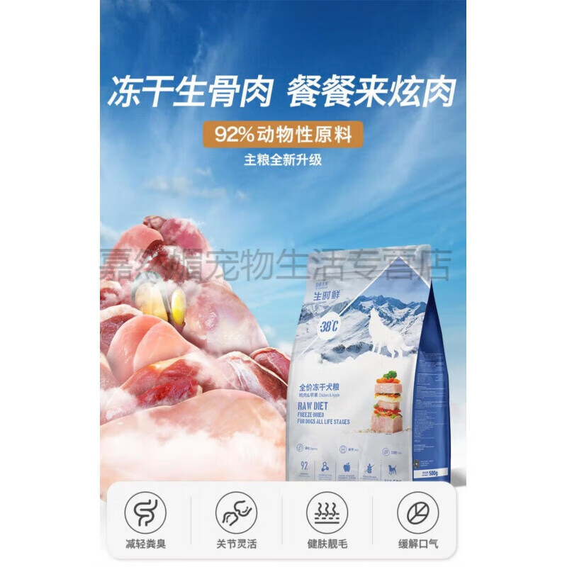伯纳天纯生时鲜主食冻干狗粮500g成犬幼犬生骨肉冻干零食泰迪比熊 鸡肉苹果味 500g