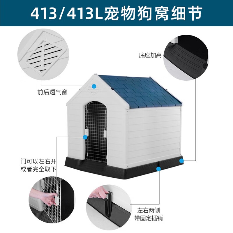 茨格曼狗窝房子型狗屋室外PP狗房子四季通用中大型犬户外狗别墅狗舍 413 加大号【适用90斤内】 有门款