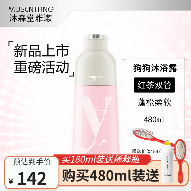 沐森堂(MUSENTANG)狗狗沐浴露雅漱双管宠物猫咪洗澡香波浴液低敏蓬松垂顺平衡控油 红茶双管香波-蓬松-480ml