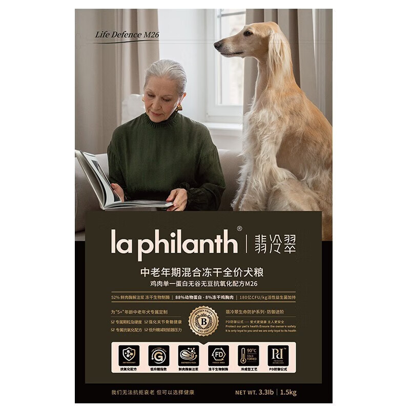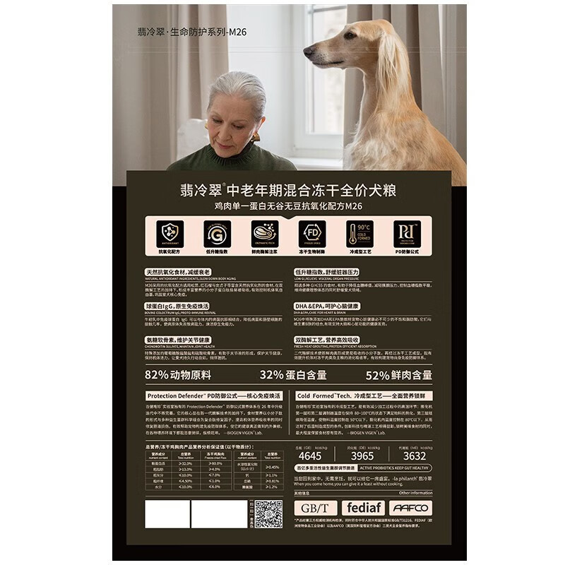 翡冷翠M系列狗粮冻干鸡胸肉低敏无谷配方全期犬粮全阶段适用 M26鸡肉中老年犬粮1.5kg