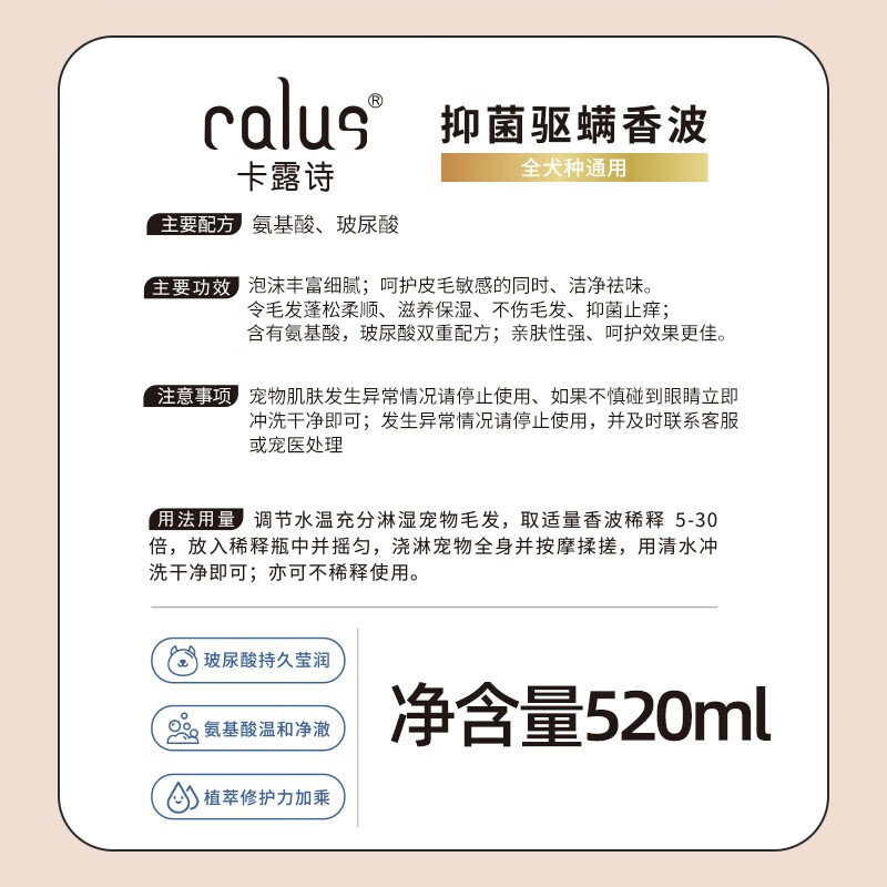 雪貂留香狗狗沐浴露猫咪猫用泰迪金毛拉布拉多白毛专用香波宠物沐浴露洗澡液 抑菌驱螨【520ml】