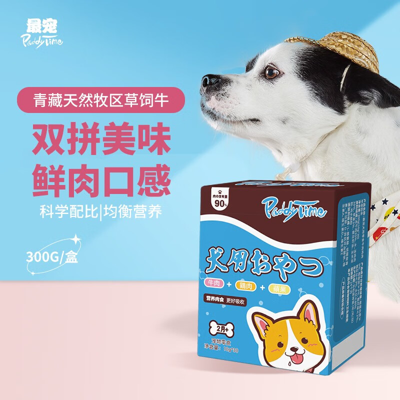 最宠(Paddy Time)零食牛肉鸡肉苹果狗条300g(10g*30) 宠物犬用湿粮营养流质成幼犬粮狗罐头肉条布丁毛球